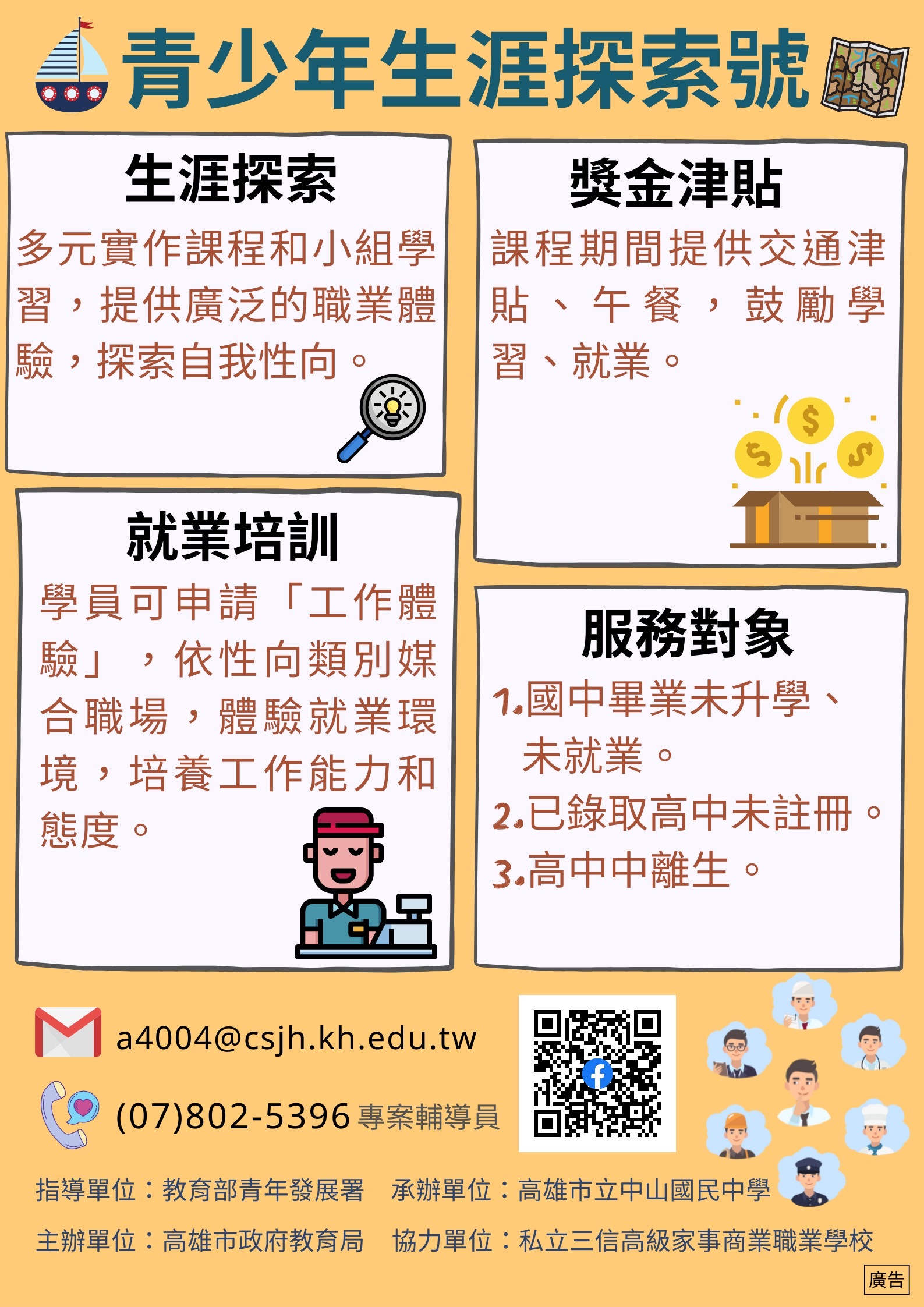 💰免學費、供午餐、補助交通費(大眾運輸)