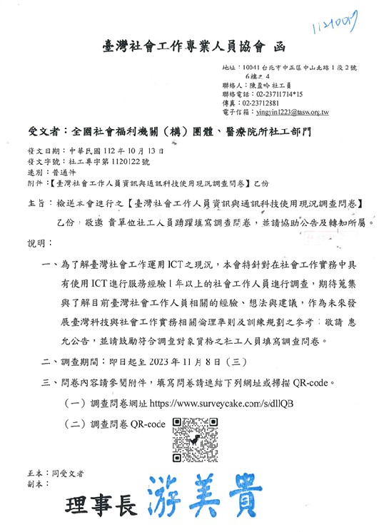 台灣社工專業協會問卷調查